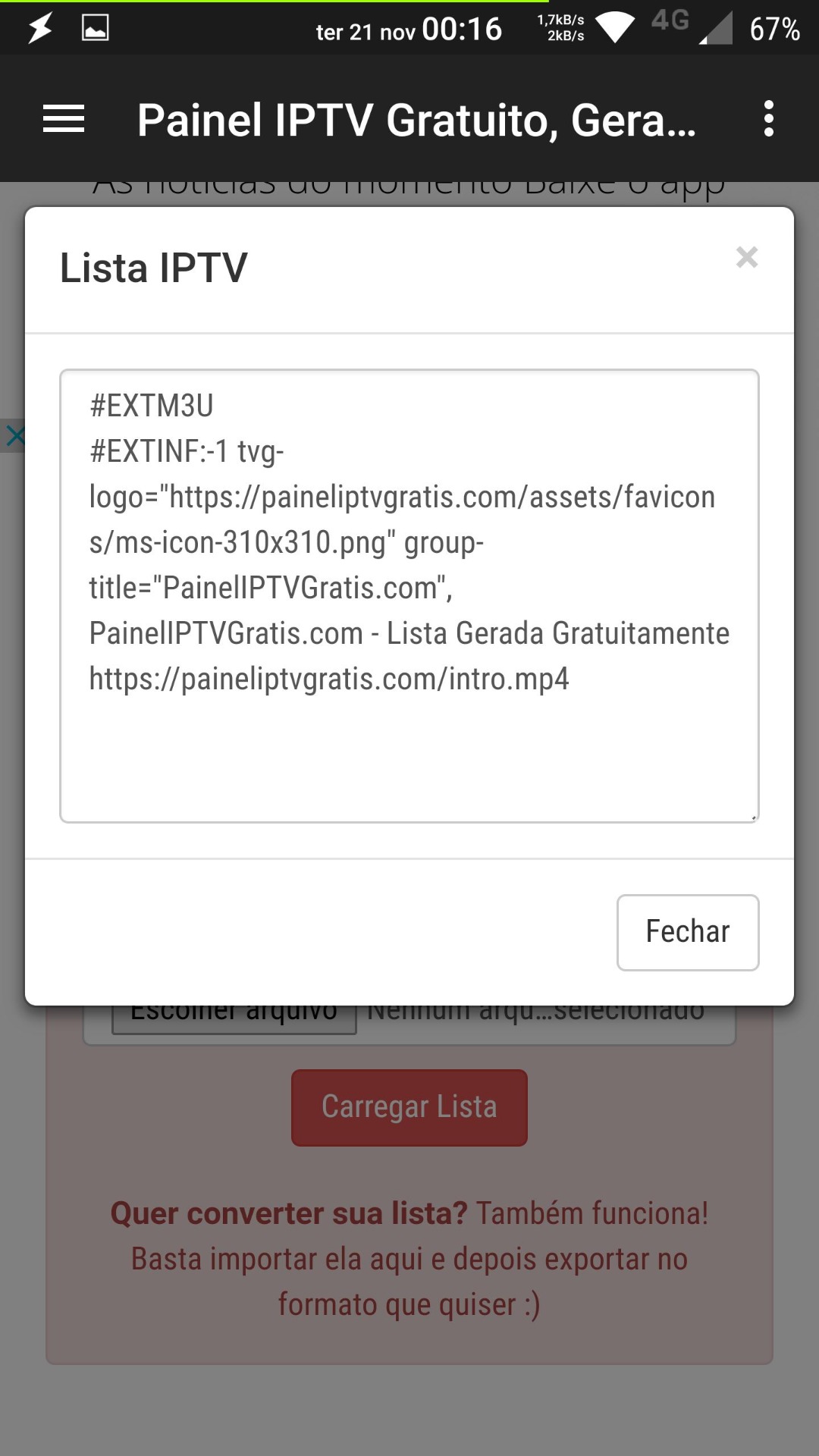 na imagem assima se tem em exemplo de lista com um link de canal, esses arquivos são arquivos de lista com url do canal na extenção .m3u